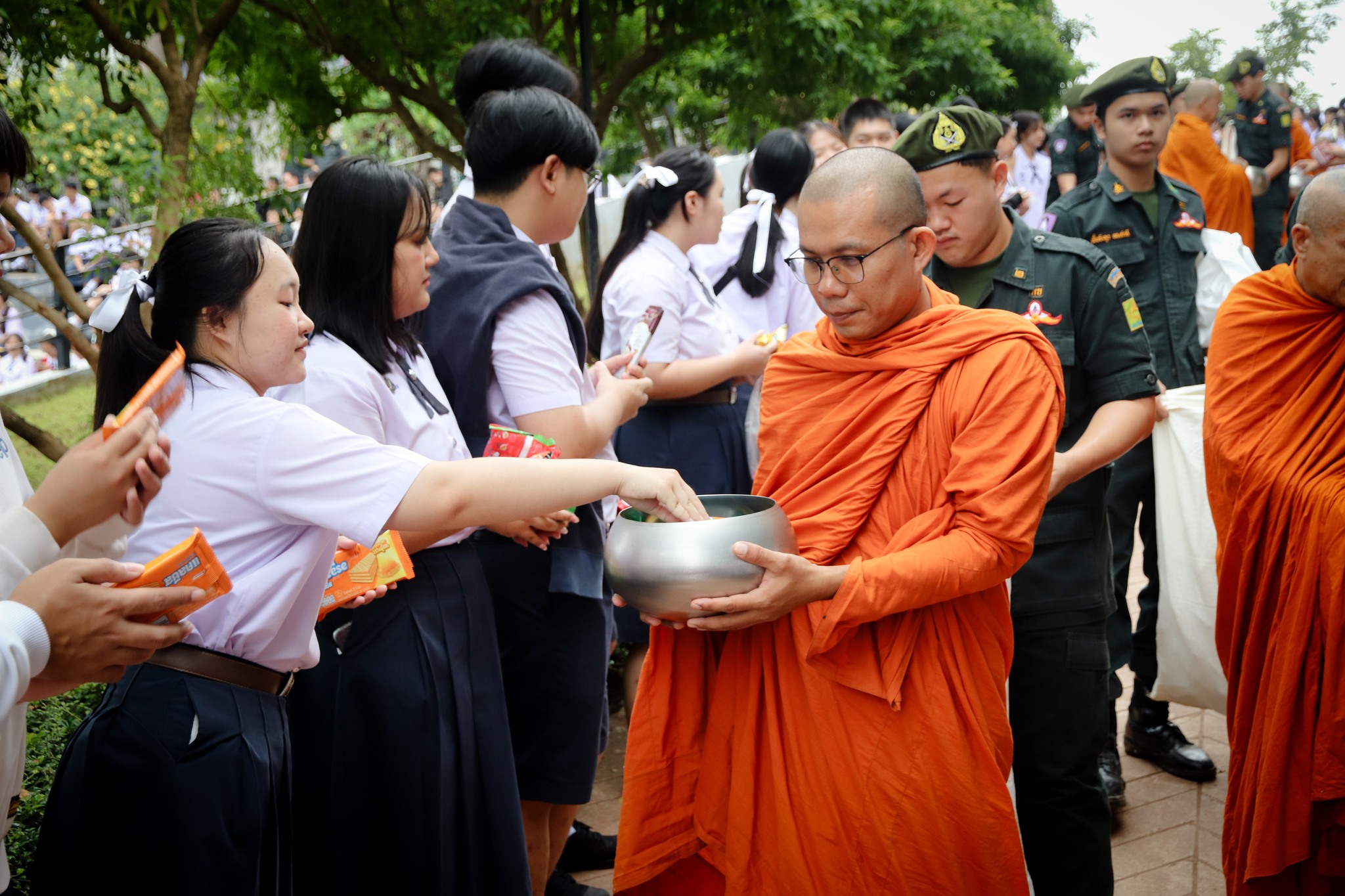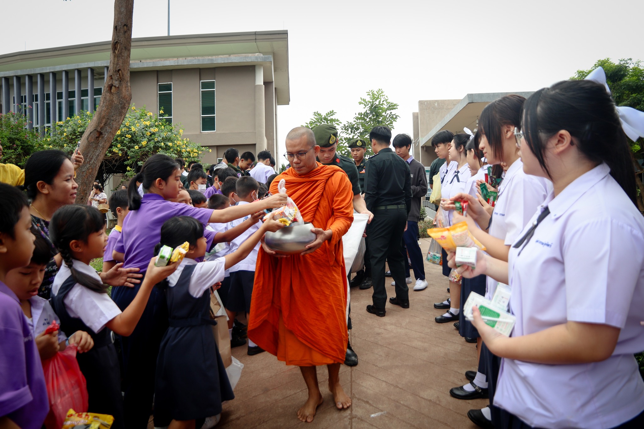 วันที่ 9 ตุลาคม 2568 เวลา 07.45 น. โรงเรียนสาธิตมหาวิทยาลัยพะเยา จัดกิจกรรมตักบาตรพระสงฆ์จำนวน 5 รูป เนื่องในช่วงสัปดาห์วันออกพรรษา พร้อมทั้งร่วมใจน้อมรำลึกในพระมหากรุณาธิคุณของพระบาทสมเด็จพระปรมินทรมหาภูมิพลอดุลยเดชมหาราช บรมนาถบพิตร เนื่องในวันนวมินทรมหาราช และเป็นการสร้างสิริมงคลเนื่องในโอกาสเปิดภาคเรียนที่ 2 ปีการศึกษา 2568 ณ สนามบาสเกตบอล โรงเรียนสาธิตมหาวิทยาลัยพะเยา