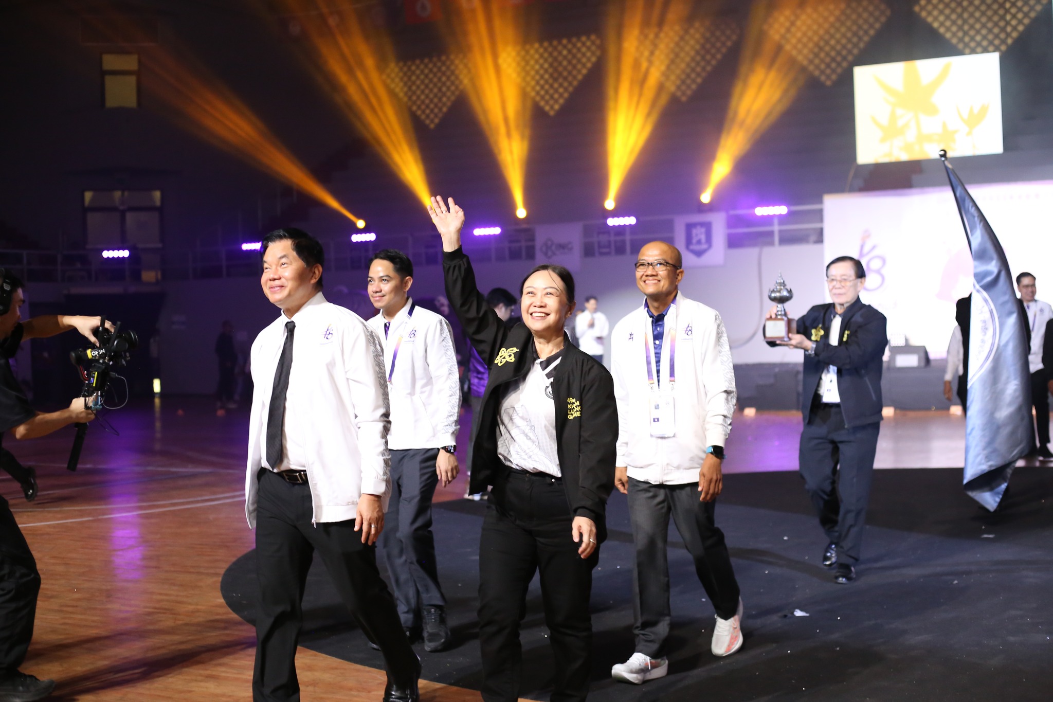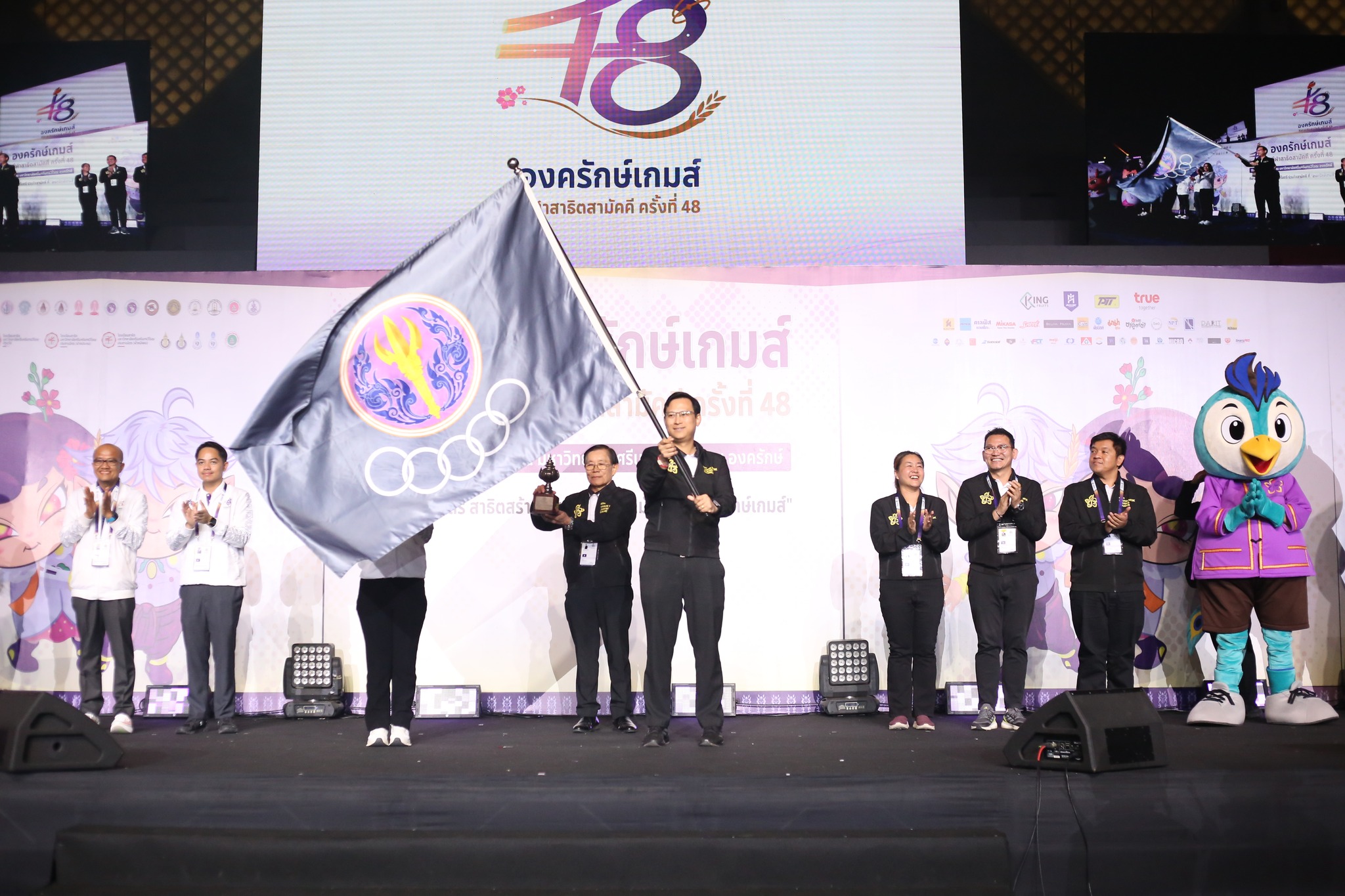ในการนี้ โรงเรียนสาธิตมหาวิทยาลัยพะเยา นำโดย รองศาสตราจารย์ ดร.ชยันต์ บุณยรักษ์ รักษาการแทนผู้อำนวยการโรงเรียน ได้รับโล่เกียรติยศในฐานะเจ้าภาพครั้งถัดไป ขณะเดียวกัน รองศาสตราจารย์ ดร.รักษิต สุทธิพงษ์ คณบดีวิทยาลัยการศึกษา มหาวิทยาลัยพะเยา ประธานเทคนิคกีฬา ได้รับธงเจ้าภาพจากเจ้าภาพเดิม พร้อมโบกสะบัดธงอย่างสง่างาม เพื่อประกาศความพร้อมในการเป็นเจ้าภาพจัดการแข่งขันกีฬาสาธิตสามัคคี ครั้งที่ 49 “คำมอกหลวงเกมส์”