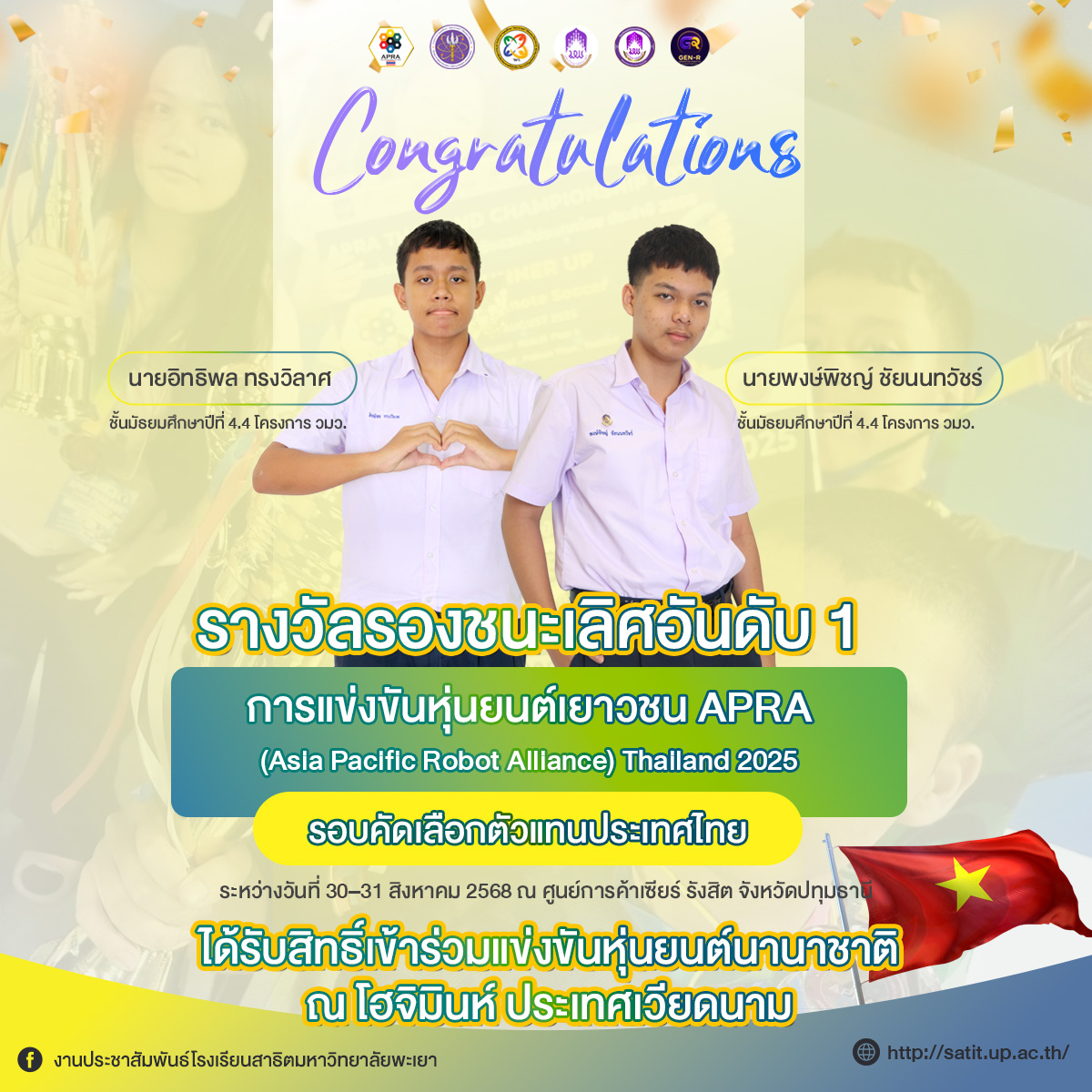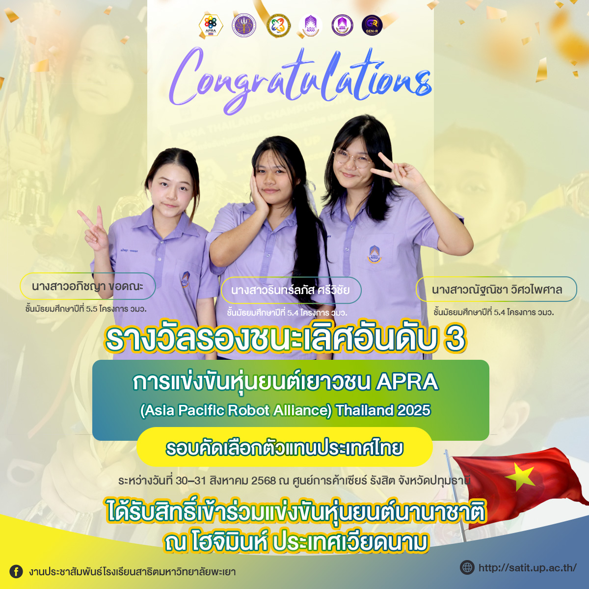 การแข่งขัน APRA 2025 ถือเป็นเวทีสำคัญที่เปิดโอกาสให้เยาวชนไทยได้พัฒนาทักษะด้านวิทยาการหุ่นยนต์ การคิดเชิงวิเคราะห์ การแก้ปัญหา และความคิดสร้างสรรค์ ซึ่งนักเรียนโรงเรียนสาธิตมหาวิทยาลัยพะเยาได้พิสูจน์แล้วว่าสามารถก้าวสู่มาตรฐานระดับประเทศได้อย่างน่าภาคภูมิ