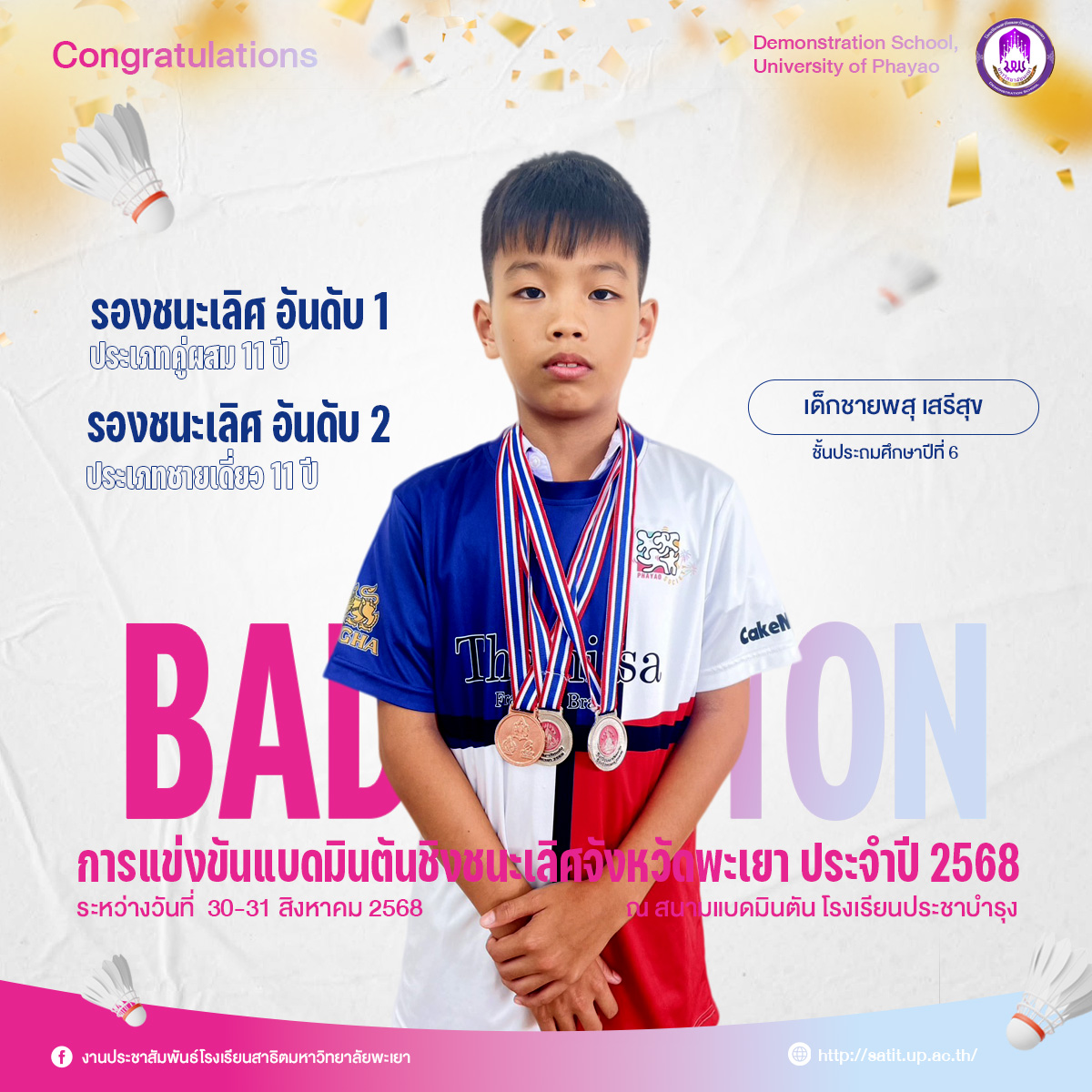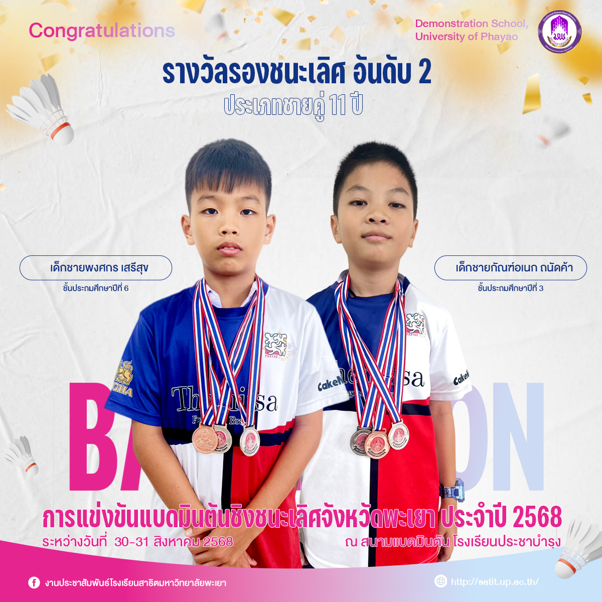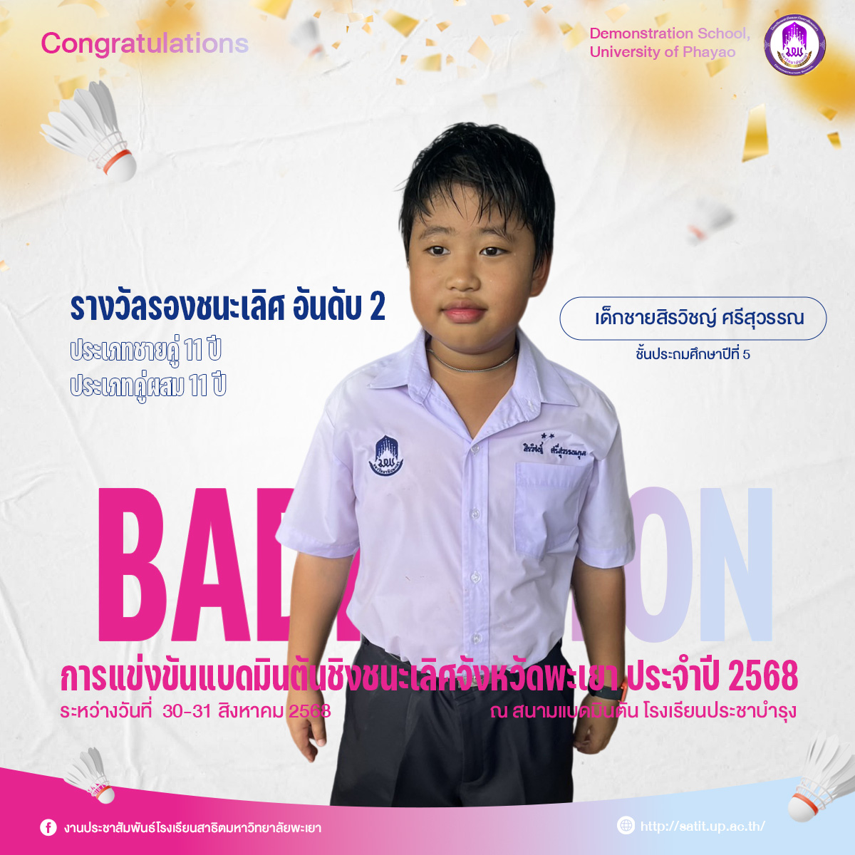 การแข่งขันแบดมินตันชิงชนะเลิศจังหวัดพะเยา ประจำปี 2568 (ระดับประถมศึกษา)