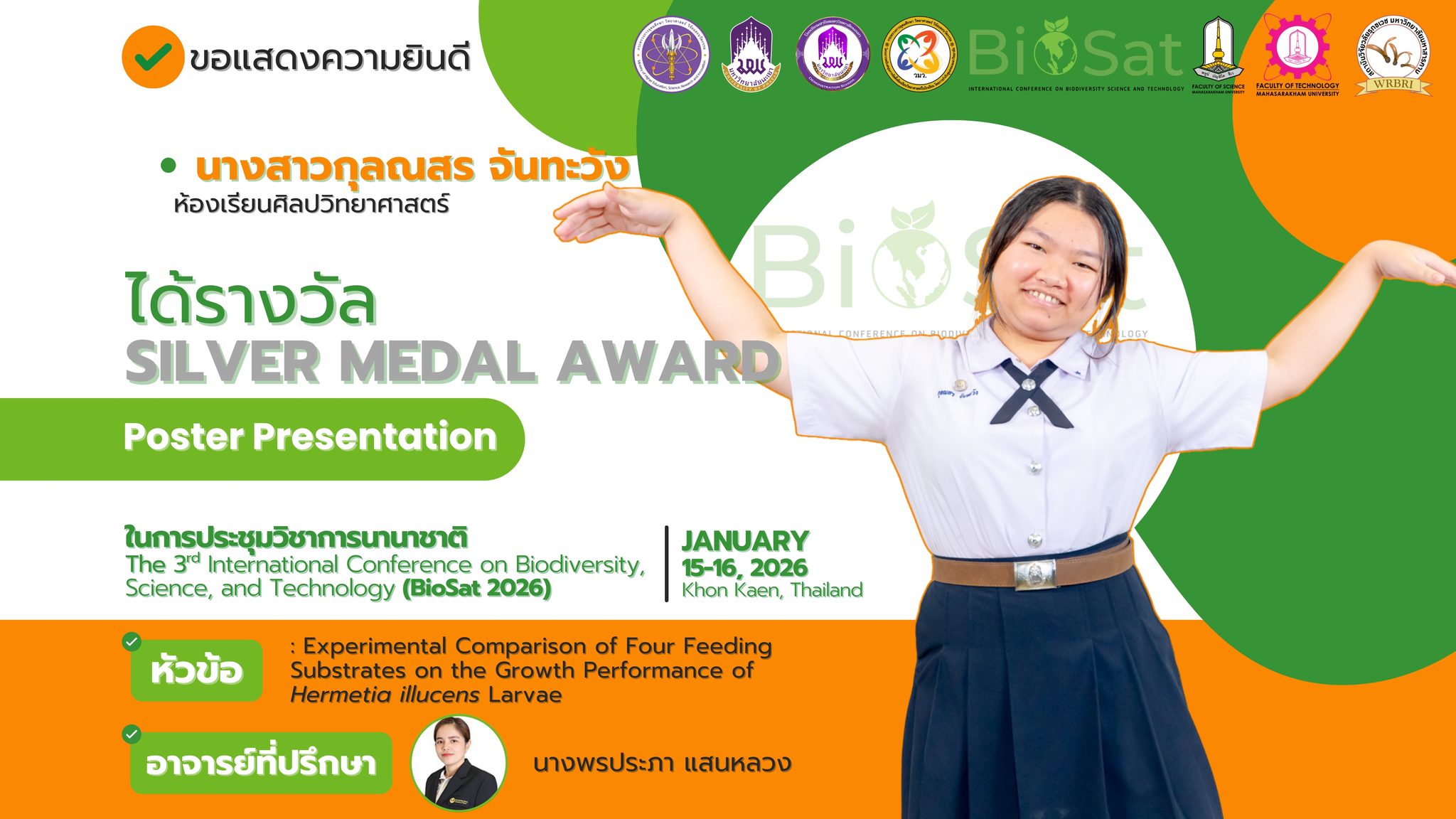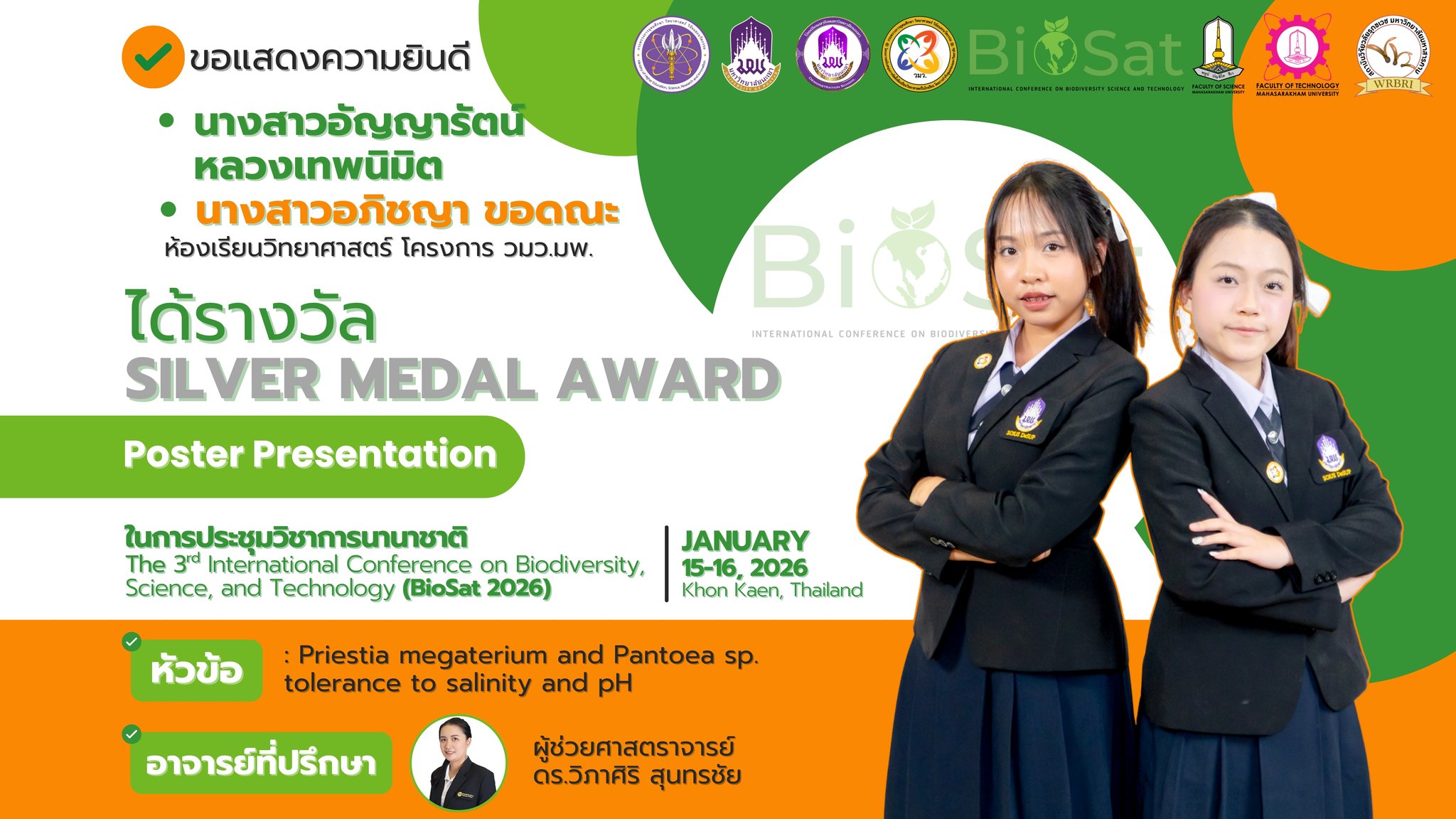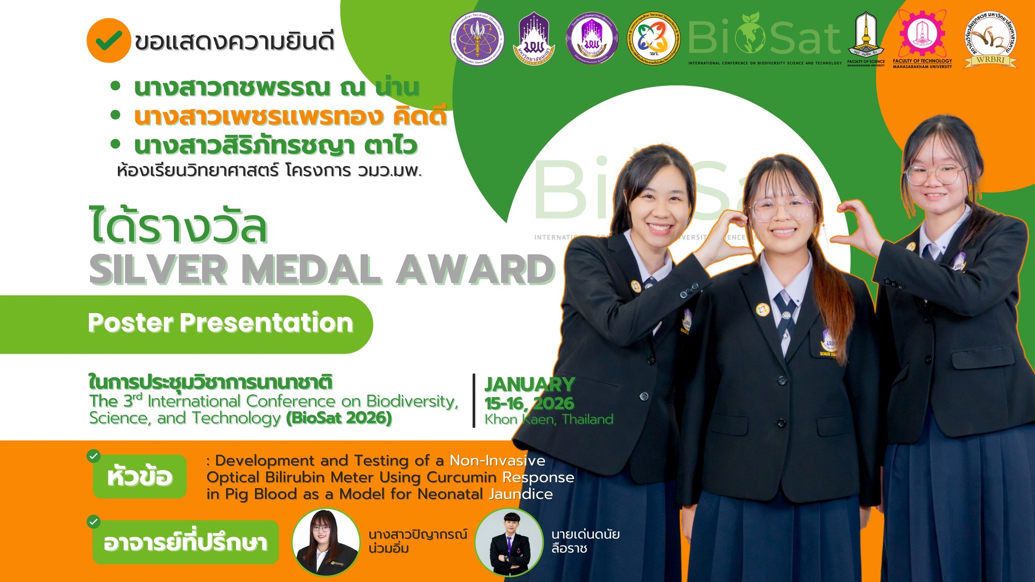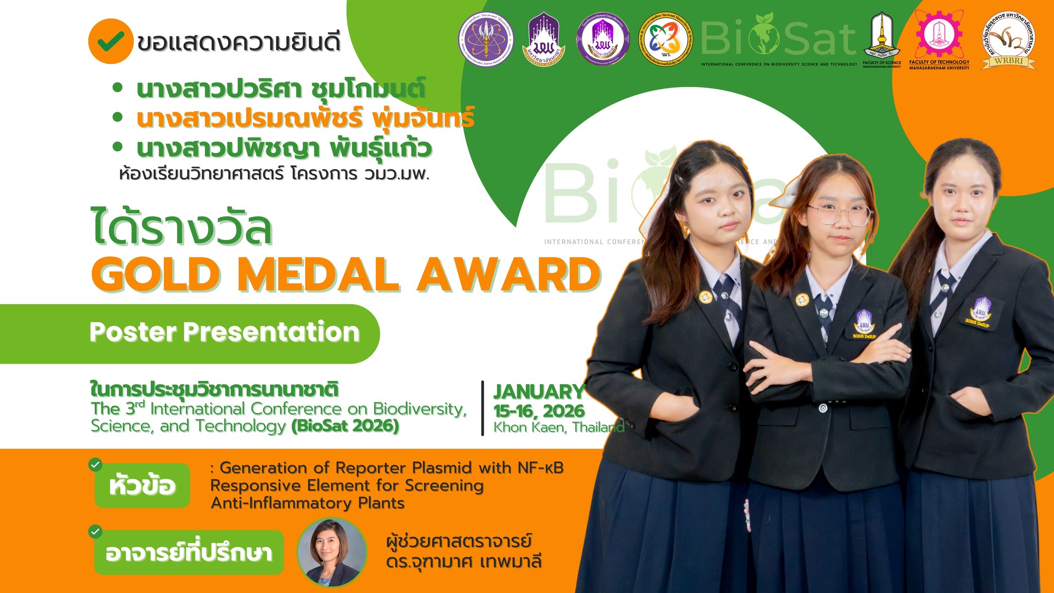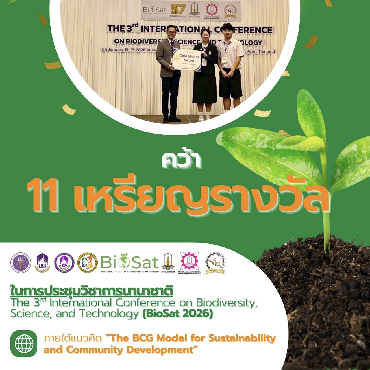 คว้า 11 เหรียญรางวัล นำเสนอในการประชุมวิชาการนานาชาติ (BioSat 2026)