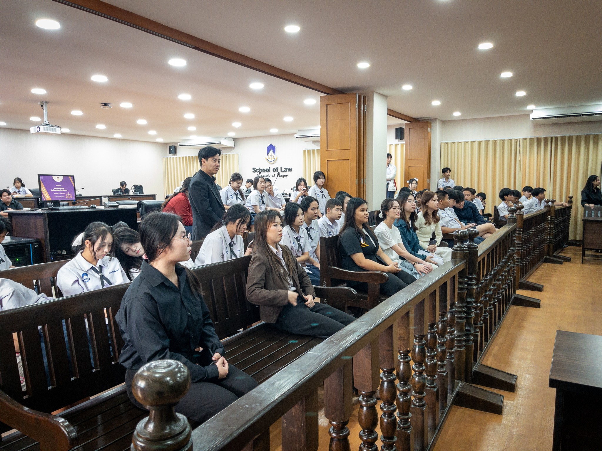 วันพฤหัสบดีที่ 19 กุมภาพันธ์ 2569 เวลา 13.30-15.30 น. โรงเรียนสาธิตมหาวิทยาลัยพะเยา โดยกลุ่มสาระการเรียนรู้สังคมศึกษา ศาสนา และวัฒนธรรม จัดกิจกรรมศึกษาดูงานศาลจำลอง ณ คณะนิติศาสตร์ มหาวิทยาลัยพะเยา เพื่อส่งเสริมการเรียนรู้เกี่ยวกับกระบวนการพิจารณาคดีในศาลตามระบบยุติธรรมของไทย
