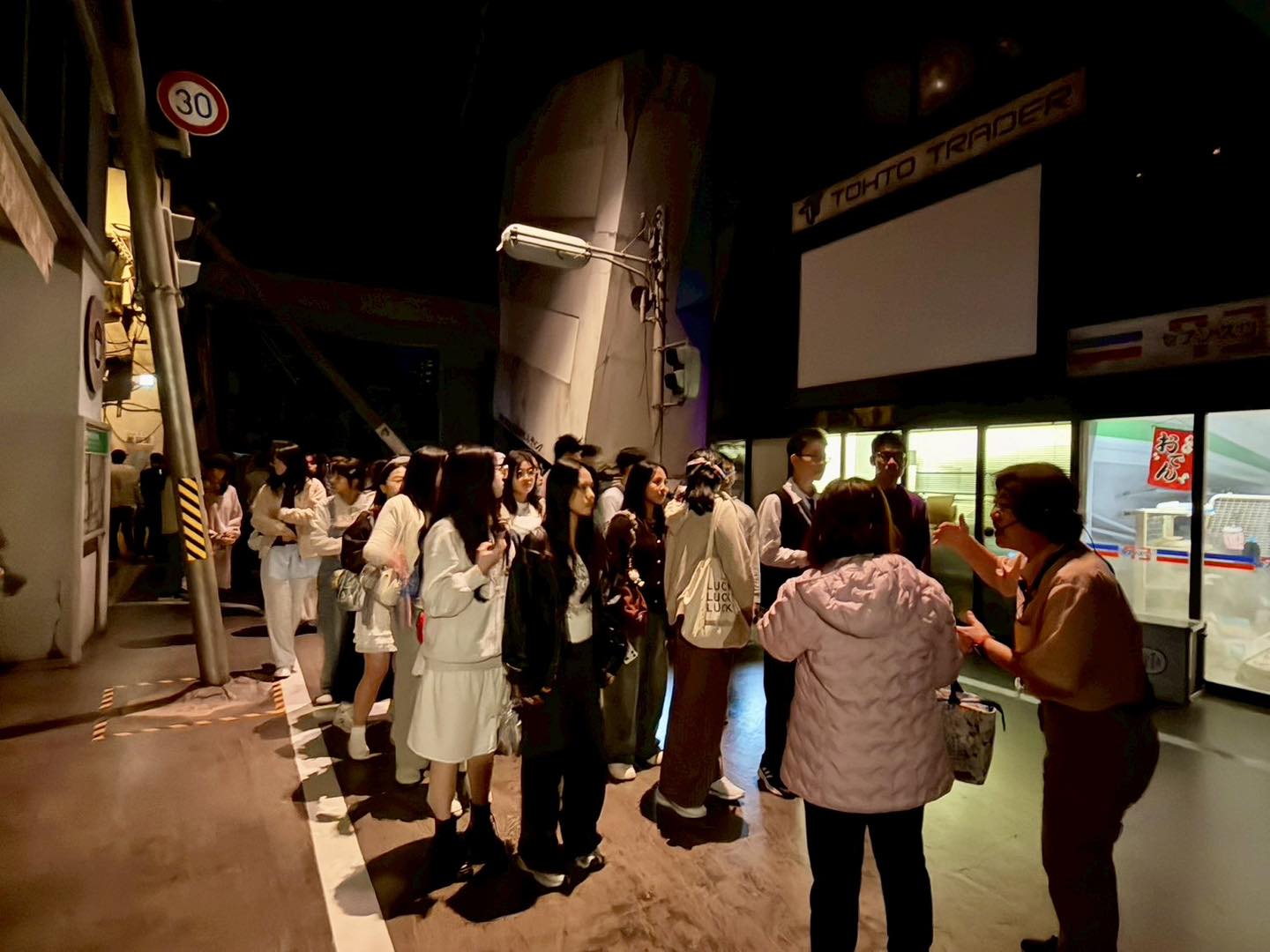 ช่วงบ่าย : คณะฯ นำนักเรียนเข้าศึกษาแหล่งเรียนรู้ ณ “ศูนย์เตือนภัยพิบัติโตเกียว” The Tokyo Rinkai Disaster Prevention Park นักเรียนได้เรียนรู้และสัมผัสประสบการณ์การเตรียมตัวรับมือกับเหตุการณ์ภัยพิบัติทางธรรมชาติอย่างจริงจัง (กรณีศึกษาประเทศญี่ปุ่น) ซึ่งภายใน ประกอบด้วย ศูนย์สัมผัสประสบการณ์ เป็นโซนทดสอบความสามารถในการรับมือกับสถานการณ์ฉุกเฉินเพื่อเอาตัวรอดภายใต้การเกิดภัยพิบัติ ส่วน ศูนย์เรียนรู้ เป็นโซนเรียนรู้ประเด็นสำคัญในการปฏิบัติตนที่ถูกต้องเมื่อเกิดภัยพิบัติ โดยนักเรียนได้เรียนรู้จากผู้เชี่ยวชาญหลังจบกิจกรรมสัมผัสประสบการณ์