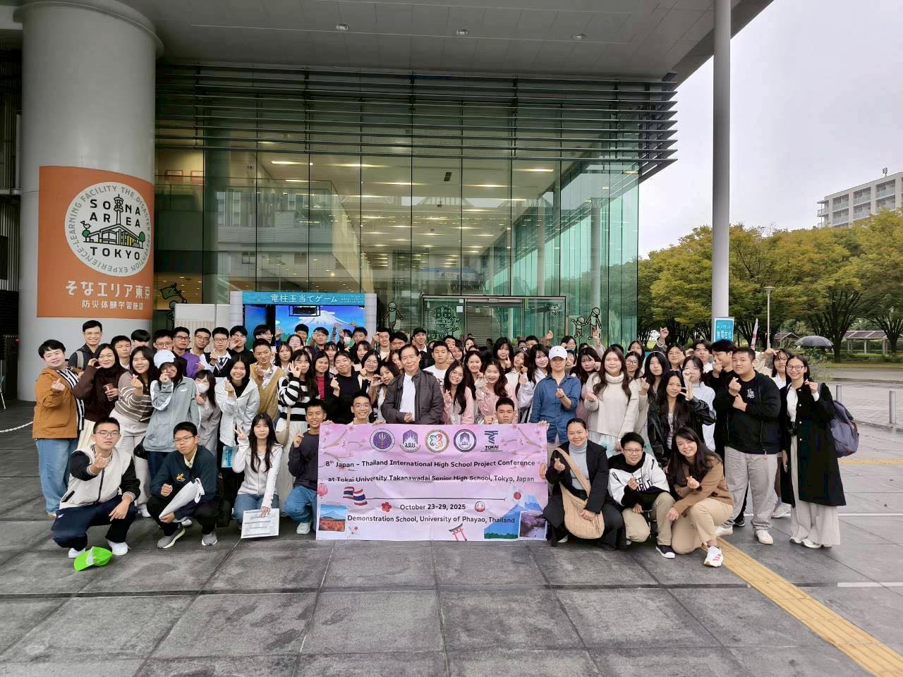 วันที่ 25 ตุลาคม 2568 : คณะผู้บริหารโรงเรียนสาธิตมหาวิทยาลัยพะเยา นำโดย รองศาสตราจารย์ ดร.ชยันต์ บุณยรักษ์ รักษาการแทนผู้อำนวยการโรงเรียน ผู้ช่วยศาสตราจารย์ ดร.บุหรัน พันธุ์สวรรค์ (รองผู้อำนวยการฝ่ายบริหาร) ผู้ช่วยศาสตราจารย์ ดร.ชนม์เจริญ ชัยรัตน์สิริพงศ์ (รองผู้อำนวยการฝ่ายวิชาการ) รองศาสตราจารย์ ดร.วิจิตรา จิตอ่อนน้อม ผู้ช่วยผู้อำนวยการ (โครงการ วมว.มพ.) และคณาจารย์ พร้อมด้วยนักเรียน จำนวน 78 คน เดินทางสู่ Tokai University Takanawadai High School เพื่อเข้าร่วมการนำเสนอผลงานโครงงานวิทยาศาสตร์ ในงานประชุม 8th Japan-Thailand International High School Project Conference 2025 ร่วมกับ 7 สถาบันของประเทศญี่ปุ่น และประเทศไทย