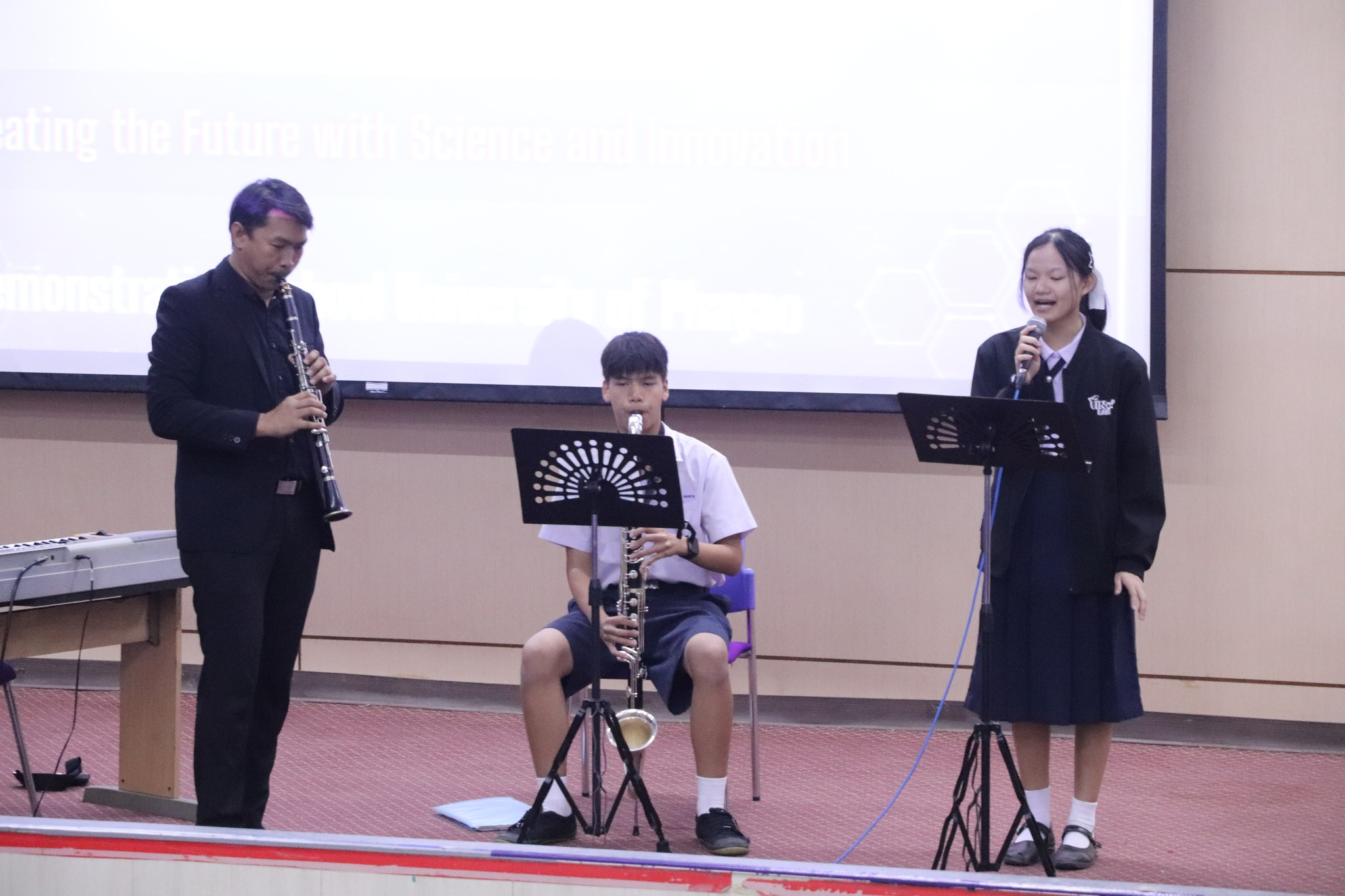 ในช่วงบ่าย นักเรียนระดับชั้นมัธยมศึกษาปีที่ 5 ได้นำเสนอโครงงานในรูปแบบบรรยาย ณ ห้องนำเสนอโรงเรียนสาธิตมหาวิทยาลัยพะเยา เปิดโอกาสให้นักเรียนฝึกกระบวนการวิจัยเชิงระบบ การวิเคราะห์ข้อมูล และการแก้ปัญหาเชิงวิทยาศาสตร์อย่างมีเหตุผล พร้อมพัฒนาทักษะการสื่อสารทางวิชาการอย่างมืออาชีพ